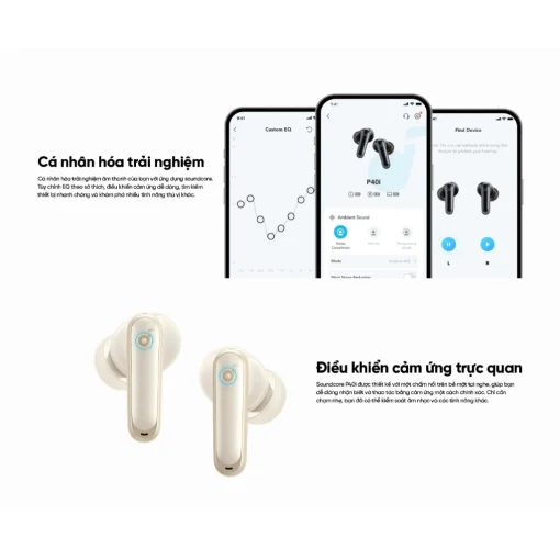 Với ứng dụng Soundcore, Soundcore P40i A3955 nâng cao trải nghiệm âm thanh với HearID, tùy chỉnh EQ và tiếng ồn trắng theo sở thích. Hỗ trợ bluetooth 5.3 mới nhất.