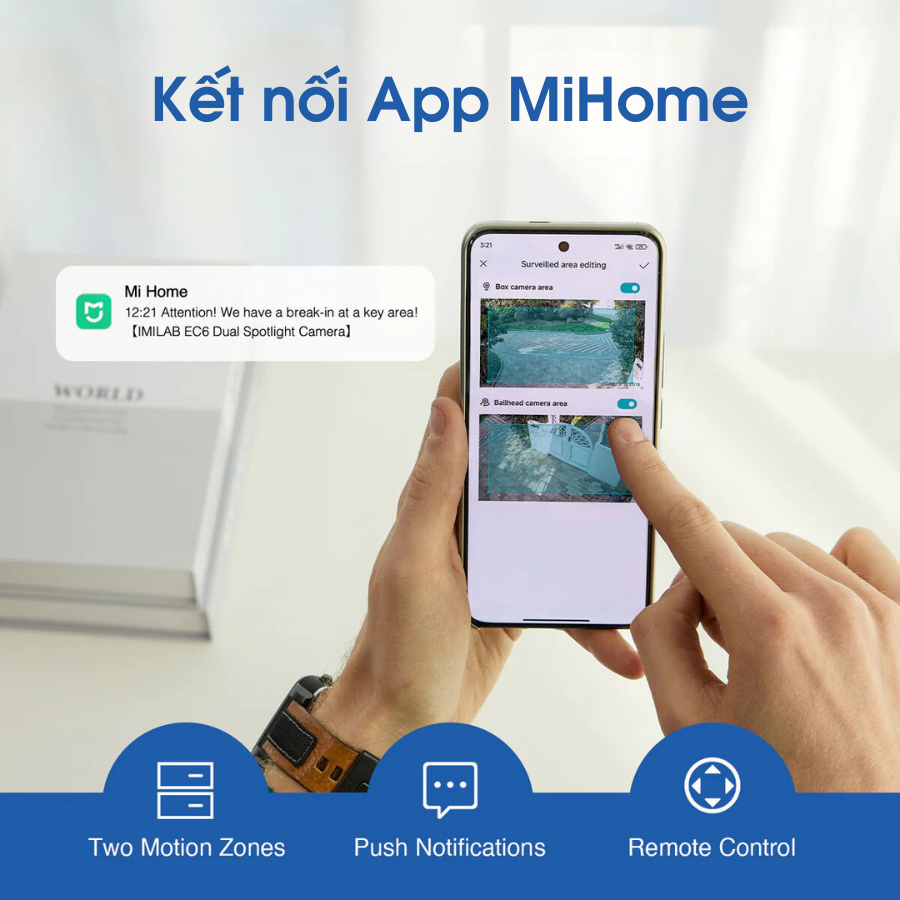 Khi kết nối camera Imilab EC6 Dual, bạn có thể nhận thông báo mọi lúc mọi nơi, cho phép tuỳ chỉnh nhiều hơn, linh hoạt hơn. NGoài ra, ngay trên App, người dùng có thể thiết lập tối đa hai vùng chuyển động, để EC6 Dual có thể theo dõi chặt chẽ và phản ứng, cảnh báo kịp thời. Với Imilab EC6 Dual, người dùng có thể nhận thông báo và cảnh bảo mọi lúc mọi nơi.