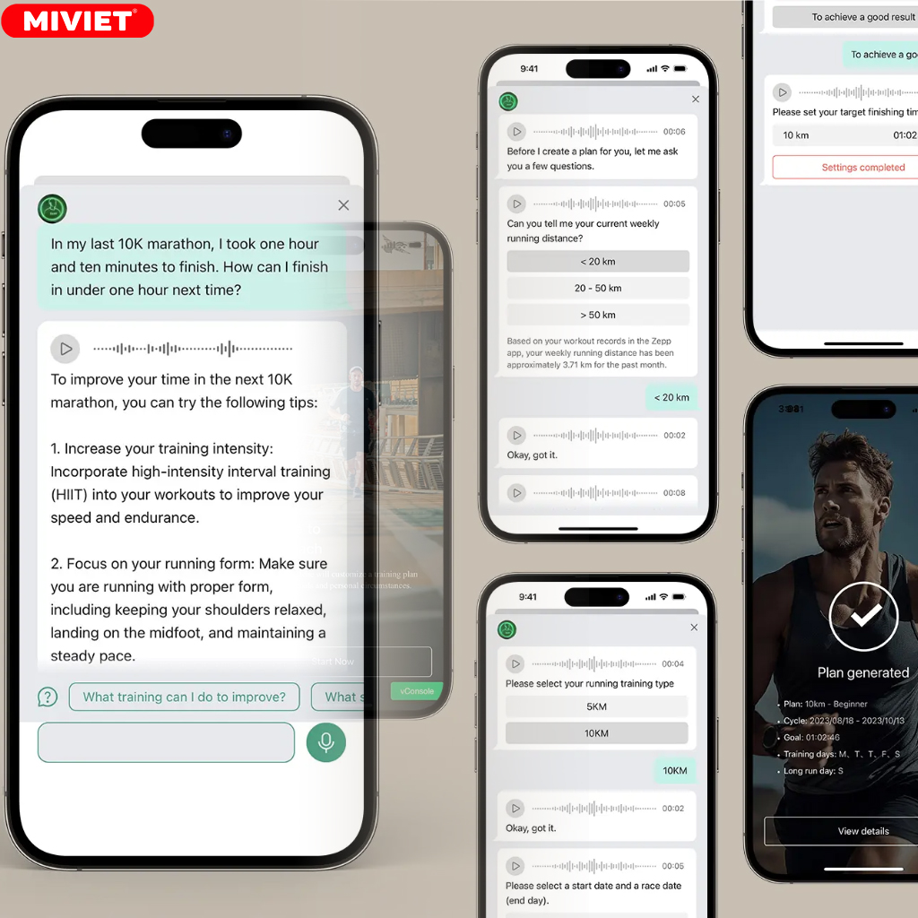 Zepp CoachTM có thể tự động tạo ra lộ trình chạy phù hợp dựa trên trình độ hiện tại của bạn, mục tiêu chạy đua và khoảng cách mong muốn, giúp bạn chuẩn bị tốt nhất cho các cuộc đua 3km, 5km hay 10km sắp tới.