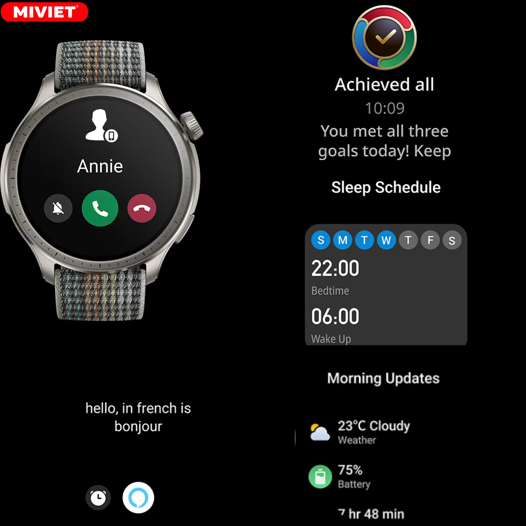 Tính năng màn hình luôn hiển thị để xem giờ, ngày và các thông báo. Theo dõi giấc ngủ và cài đặt lịch trình ngủ phù hợp. Nhận các bản tóm tắt thông tin hàng ngày như thời tiết, lịch, mục tiêu…