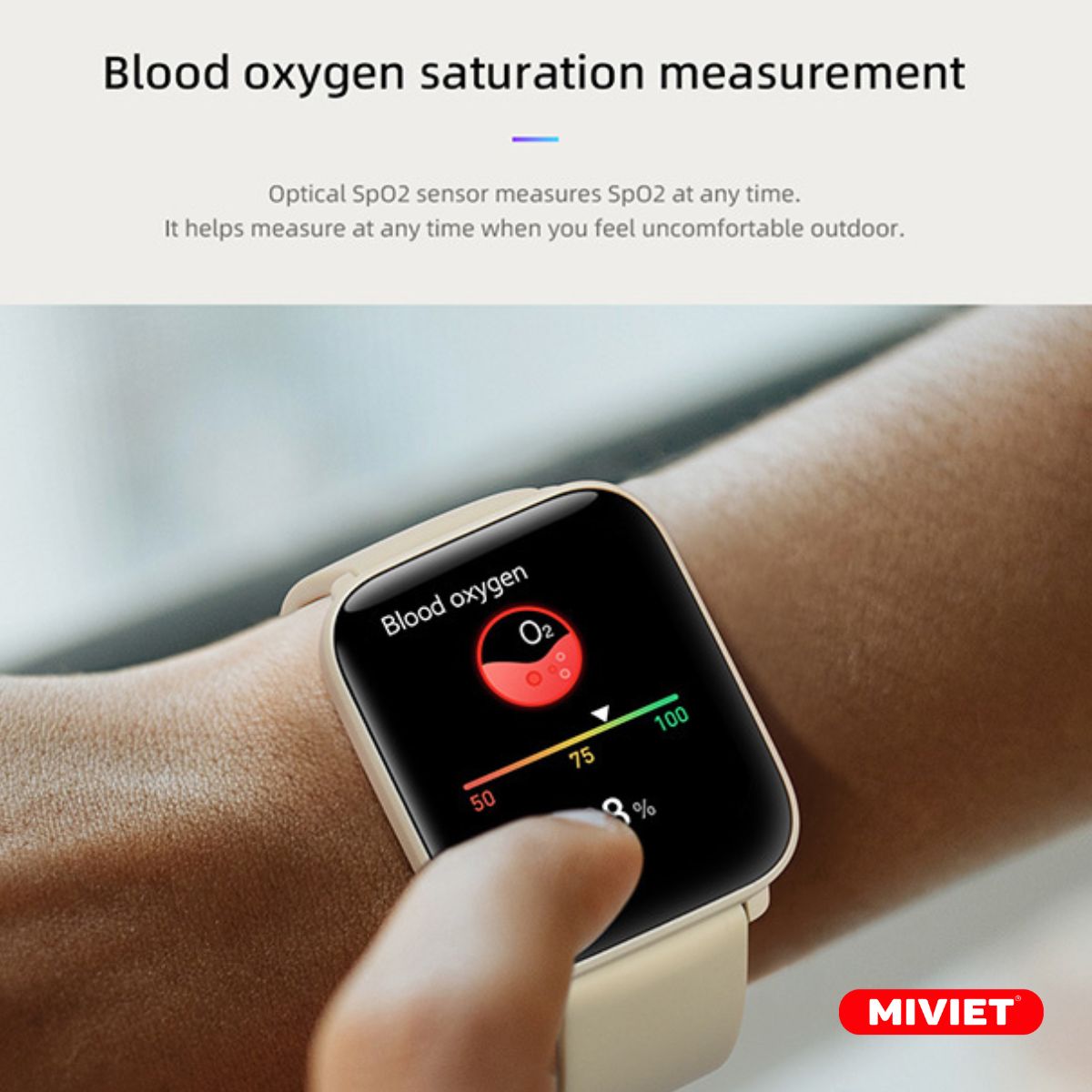 Thiết bị này, tính năng đáng chú ý trong việc chuẩn đoán nồng độ oxy trong máu giúp đánh giá tình trạng sức khỏe tổng thể và phát hiện các dấu hiệu bất thường sớm. Điều này hỗ trợ người dùng trong việc theo dõi tình trạng hô hấp, đảm bảo việc cung cấp oxy đủ cho cơ thể trong các hoạt động hàng ngày và tập luyện.