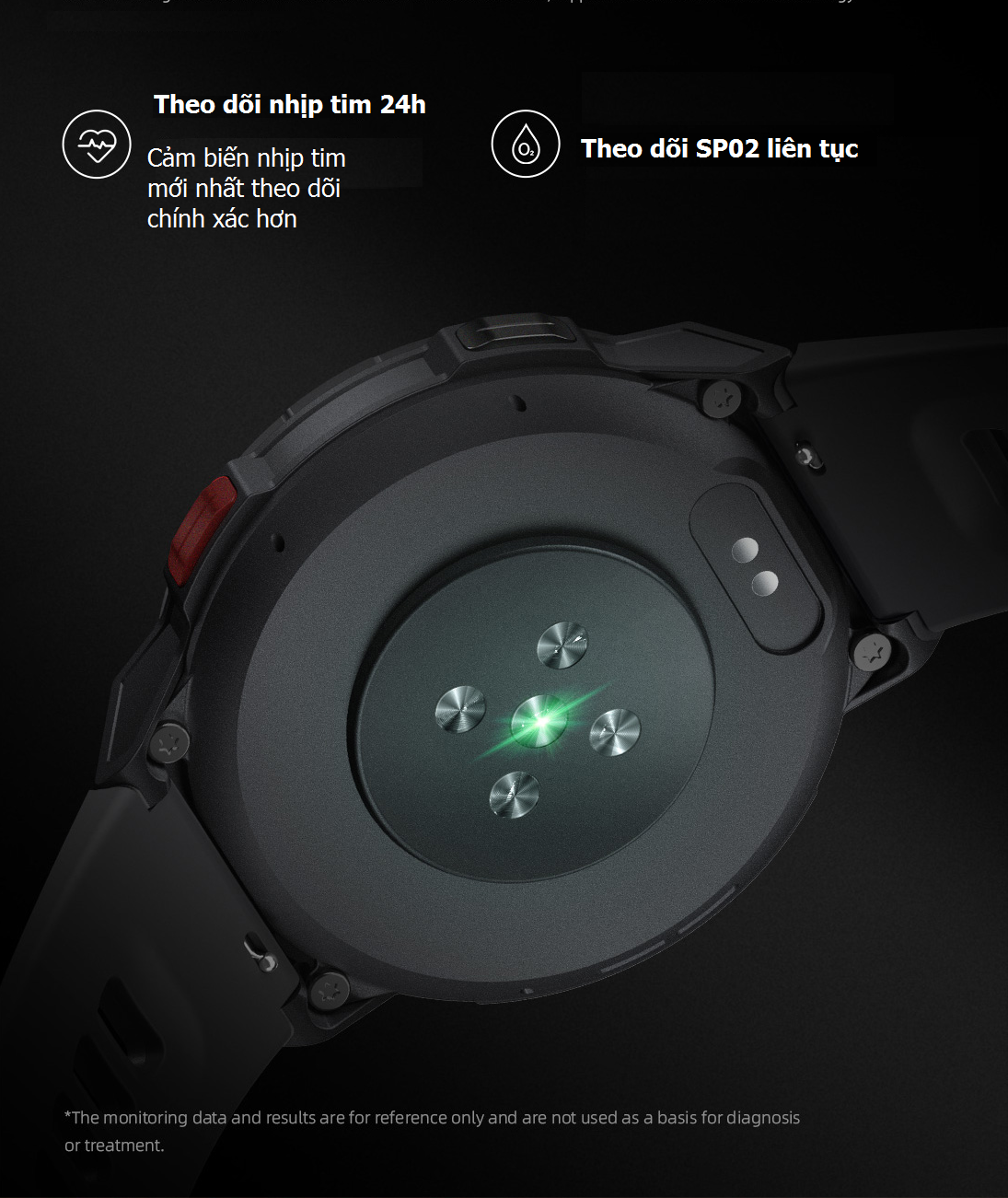 Đo nhịp tim Đo lượng oxy trong máu Cảnh báo nhịp tim bất thường |