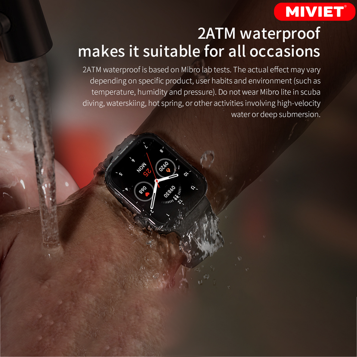 Đạt chứng nhận 2ATM tiêu chuẩn quốc tế, Mibro T1 XPAW006 sở hữu khả năng chống thấm nước, mồ hôi và bụi bẩn, giúp bạn thoải mái tham gia các hoạt động thể thao trong nước hay rửa tay dưới vòi nước mà không phải lo lắng.