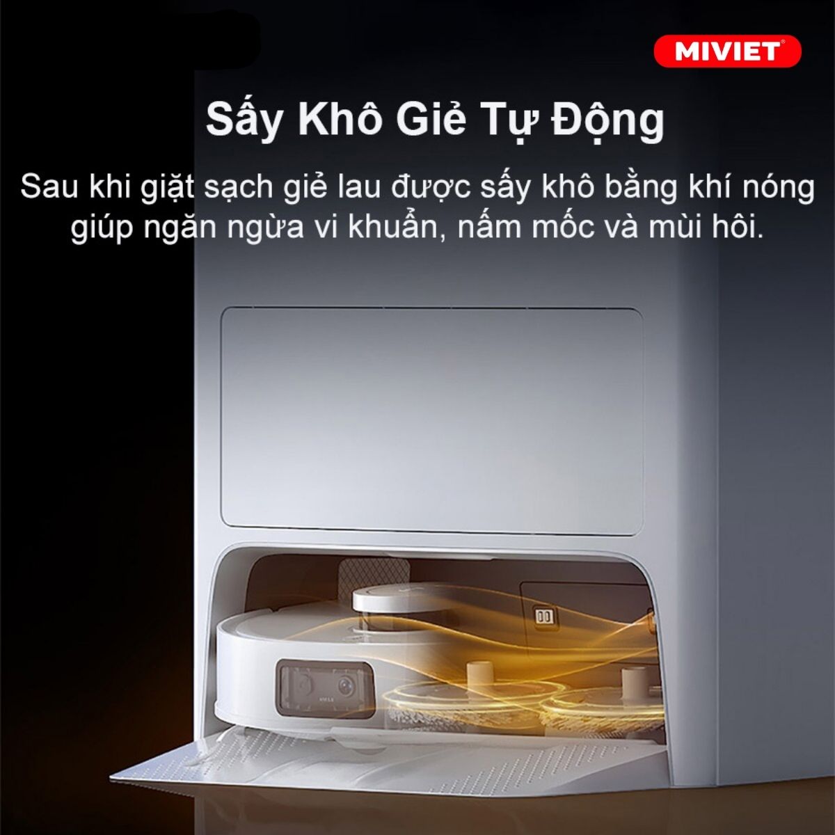 Thiết bị còn mang lại tính năng sấy khô giẻ lau bằng khí nóng. bạn có thể tùy chỉnh thời gian một cách linh hoạt cho thời gian sấy của giẻ.