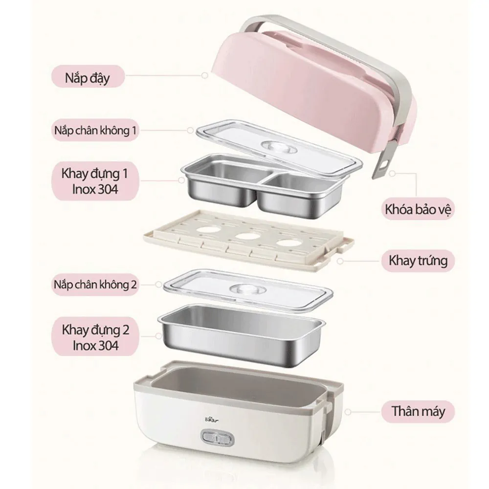 Đánh giá chi tiết Hộp cơm điện cầm tay đa năng Bear DFH-B10J2