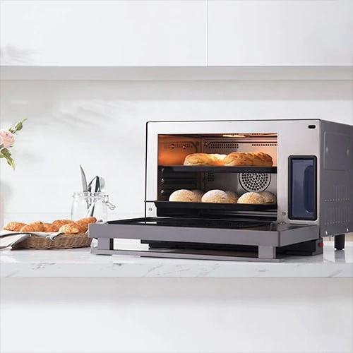 Chế độ hấp và nướng có thời gian dài hơn, nhiệt độ tối đa đạt 230°C, đồng thời nướng ở nhiệt độ cao, nó được kết hợp chính xác với hơi nước bổ sung để làm cho thực phẩm nướng trong ngon hơn, bên trong ngon và bên ngoài giòn với hương vị rất mịn.