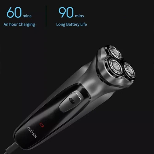 Máy cạo râu Xiaomi Enchen BlackStone sở hữu viên pin có dung lượng khá lớn, được hỗ trợ sạc nhanh khi máy chỉ mất 60 phút để sạc đầy và có thể sử dụng liên tục trong 90 phút. Thông thường máy sử dụng được trong vòng 2 tháng nếu trung bình sử dụng 90 giây cho một lần cạo. Ngoài ra, khi sản phẩm hết pin người dùng có thể vừa dùng máy vừa cắm sạc.
