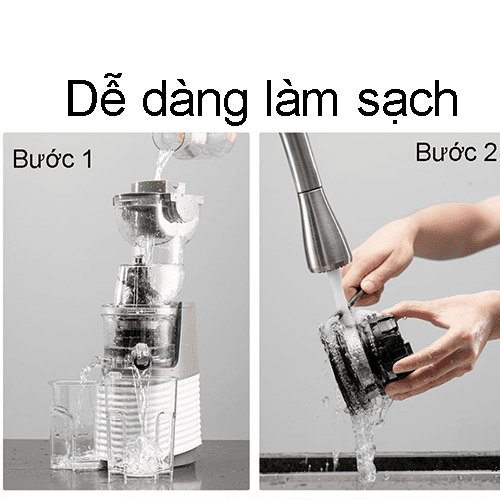 Các chi tiết trên máy được thiết kế đơn giản, không cầu kì, người dùng có thể dễ dàng tháo rời thiết bị để vệ sinh sau mỗi khi sử dụng. Cụ thể: sau khi ép bạn chỉ cần đổ nước vào và chọn chế độ đảo ngược trong 10s, máy sẽ được làm sạch nhanh chóng và triệt để hoặc bạn có thể tháo rời vệ sinh màng lọc với nước.