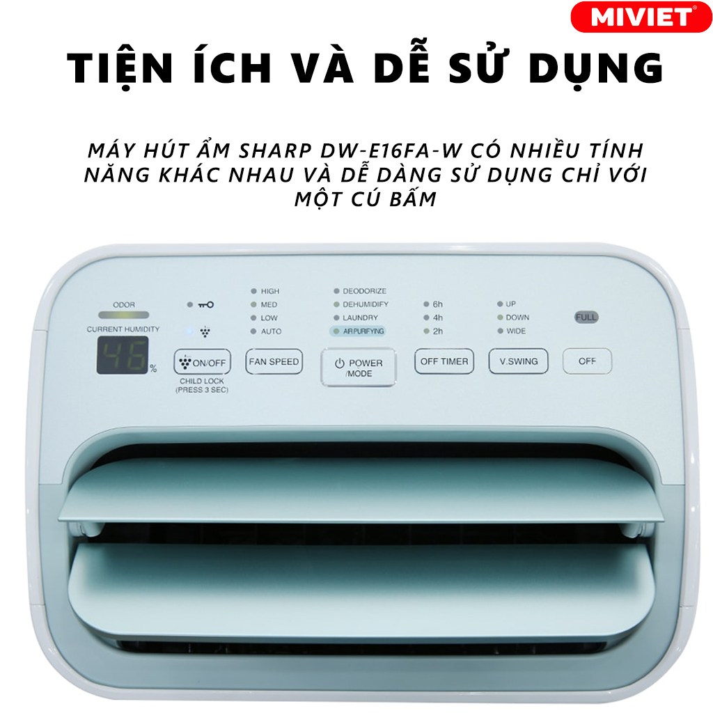 Ngày nay, việc ô nhiễm không khí ngày càng trầm trọng, đặc biệt là ở các thành phố lớn. Độ ẩm cao cũng khiến nấm mốc phát triển, gây hại cho sức khỏe. Chính vì vậy, máy hút ẩm đã trở thành vật dụng không thể thiếu trong mỗi gia đình. Máy hút ẩm Sharp DW-E16FA-W là sản phẩm đáng để bạn quan tâm, với nhiều tính năng vượt trội mang đến không gian trong lành cho cả gia đình.