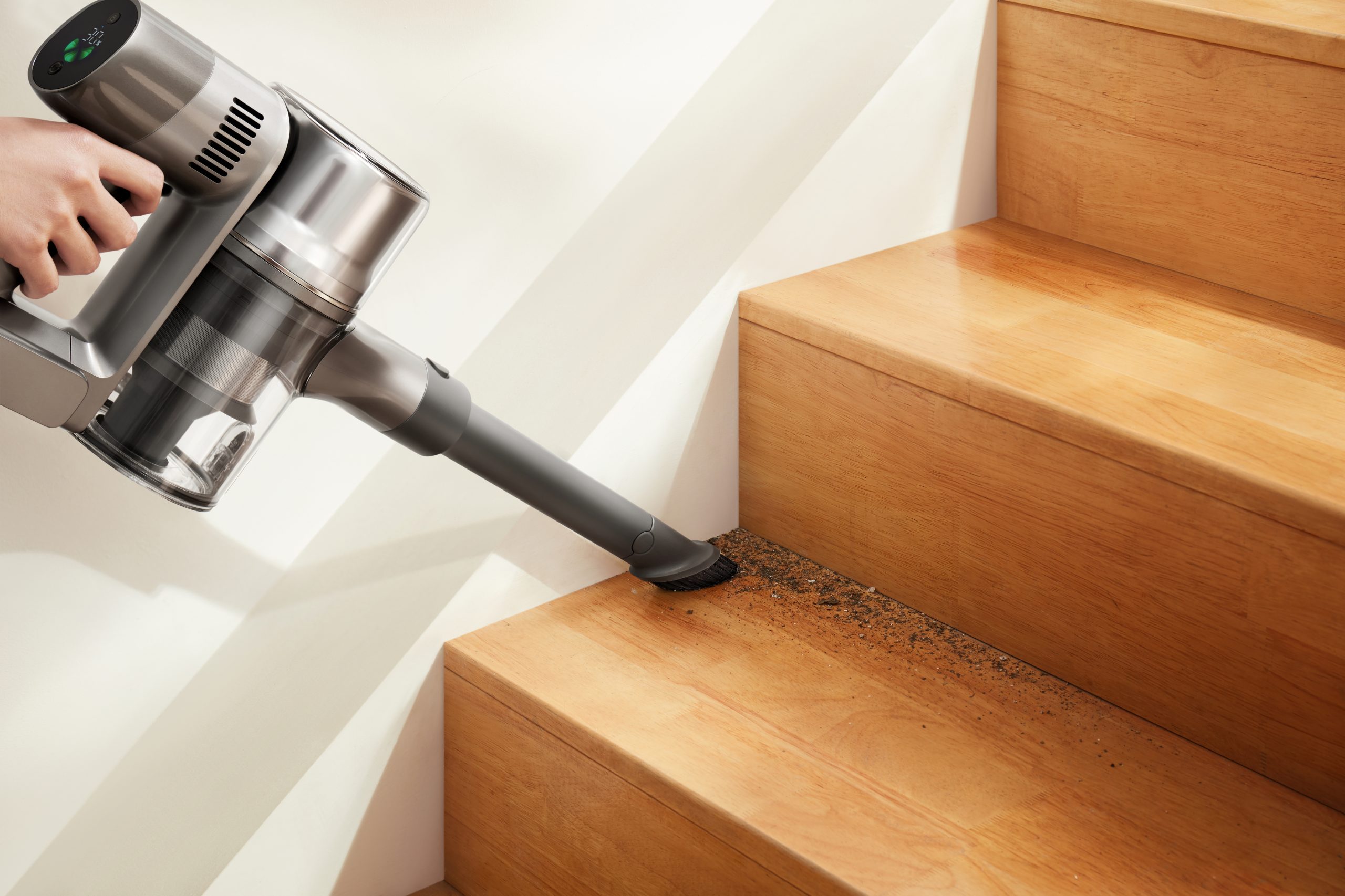 Ngoài ra, Dreame R20 với nhiều đầu hút tiện dụng, được tối ưu hóa thiết kế khẩu độ phía trước một cách linh hoạt, làm tăng hiệu quả loại bỏ bụi bẩn trên nhiều mặt sàn, giúp loại bỏ ngay cả tóc và các mảnh vụn nhỏ, các hạt bụi li ti trên các không gian hẹp, cạnh tường một cách dễ dàng. Thêm vào đó, đầu hút chổi chữ V đa diện với thiết kế răng lược bên trong có tác dụng giữ lại lông, tóc rối, giúp việc hút bụi và vệ sinh máy tiện lợi, nhanh chóng.