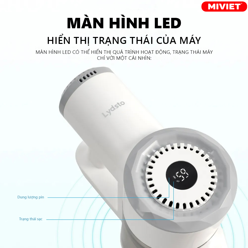LYDSTO V9 trang bị màn hình LED thông minh hiển thị dung lượng pin và trạng thái sạc pin, giúp người dùng dễ dàng kiểm soát. Màn hình LED cũng cho phép người dùng biết chính xác tình trạng pin để sắp xếp thời gian sử dụng. Đặc biệt, khi pin yếu, màn hình sẽ hiển thị cảnh báo để người dùng kịp thời sạc đầy trước khi hết pin.