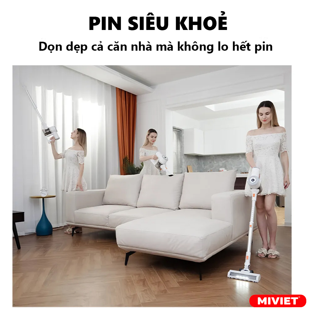 - Công suất hút mạnh 19000PA, cao hơn so với các máy hút bụi cùng phân khúc chỉ đạt 15000-18000PA.