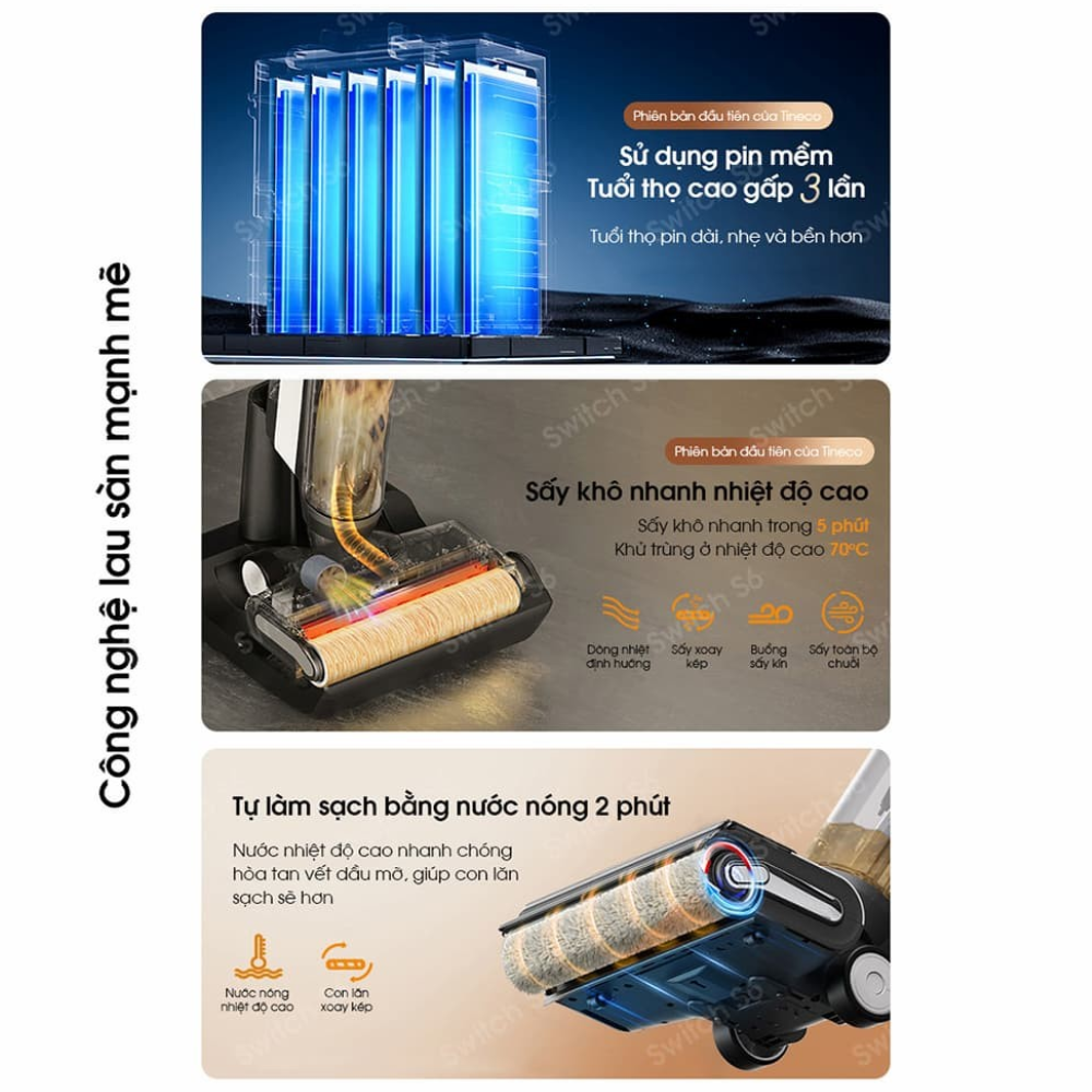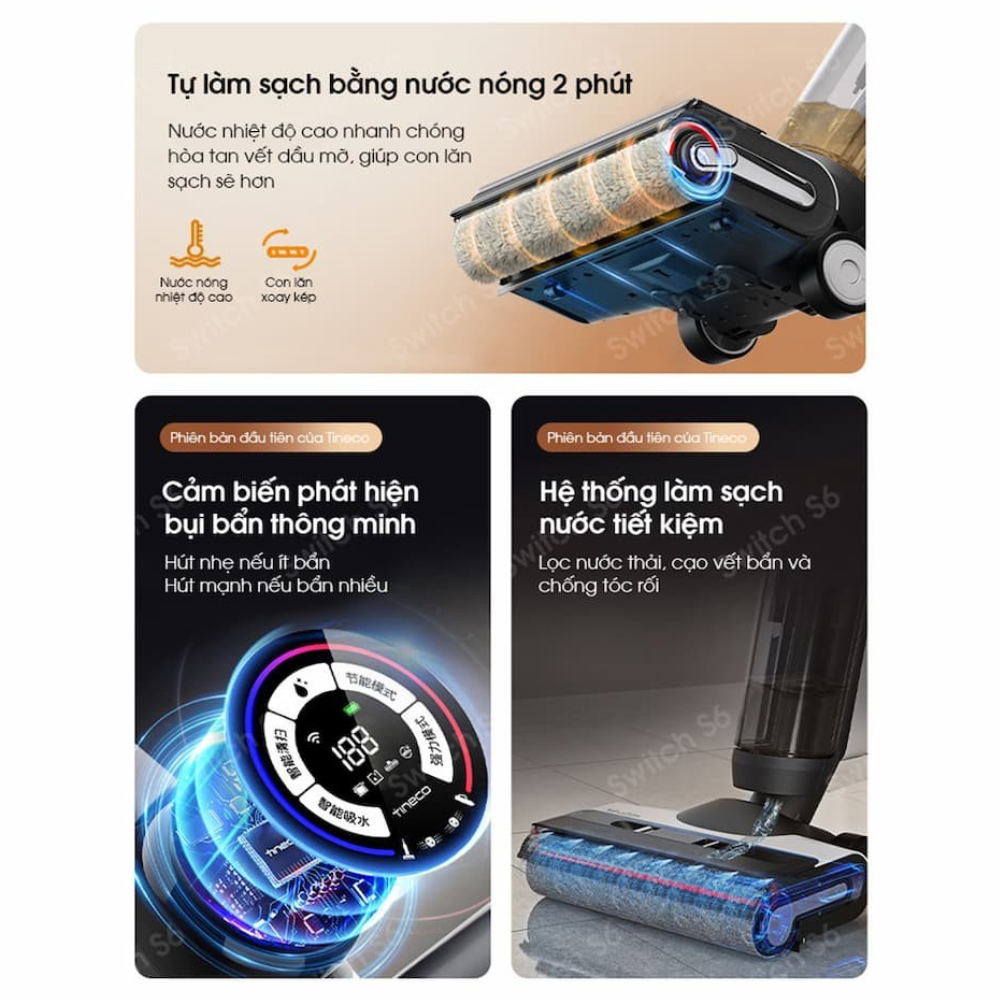 Với các tính năng thông minh này, Tineco Floor One Switch S6 không chỉ là một thiết bị làm sạch mà còn là một giải pháp toàn diện cho việc duy trì không gian sống sạch sẽ và an toàn.