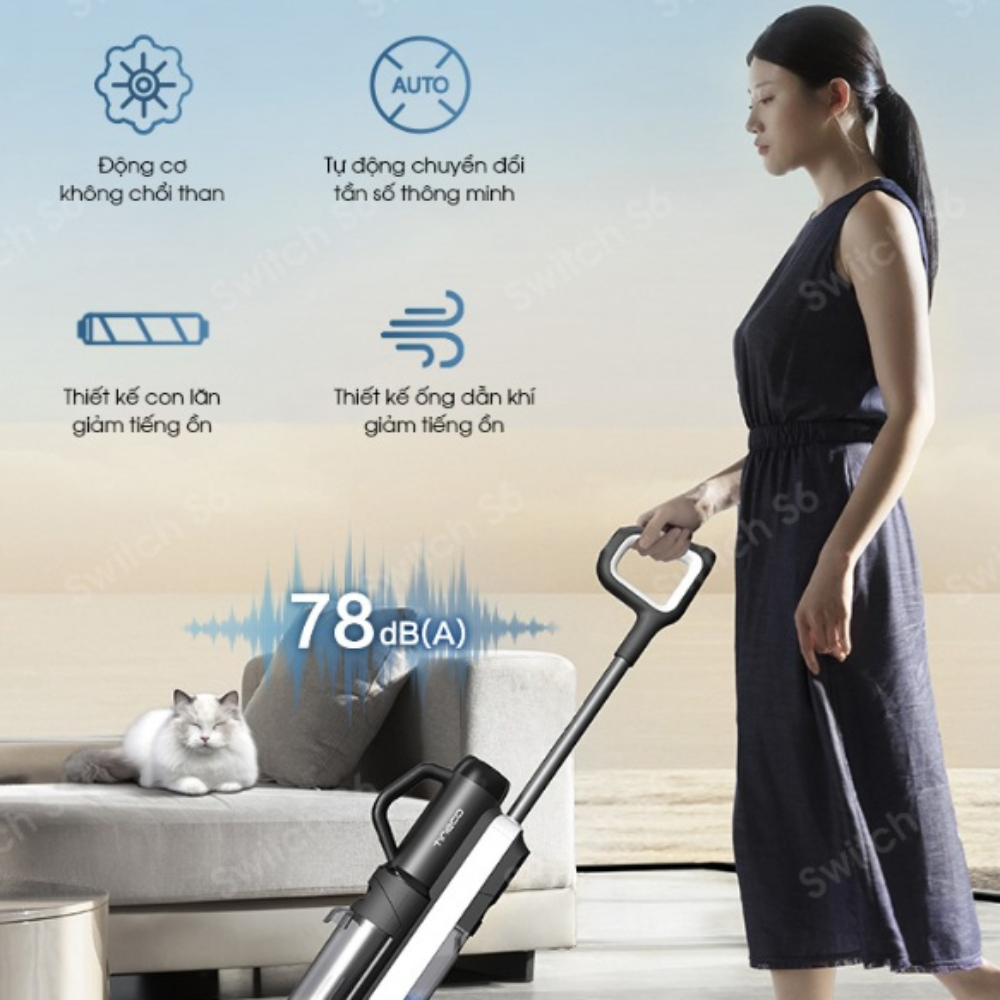 Máy hút bụi lau sàn Tineco Floor One Switch S6 sở hữu hệ thống giảm tiếng ồn tiên tiến, đảm bảo mức âm thanh vận hành dưới 78dB, mang lại trải nghiệm làm sạch yên tĩnh mà không làm ảnh hưởng đến không gian sống. Động cơ không chổi than kết hợp với hệ thống chuyển đổi tần số giúp giảm thiểu tối đa tiếng ồn trong suốt quá trình sử dụng.