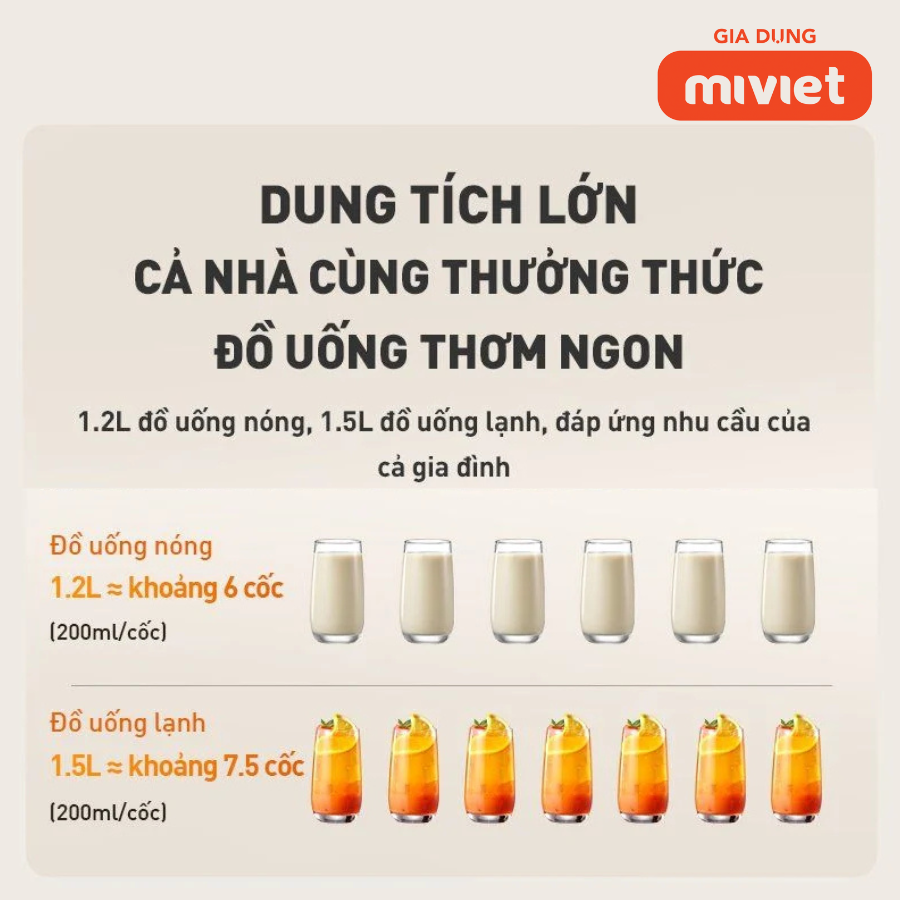| Dung tích định mức | Đồ uống nóng 1200ml, đồ uống lạnh 1500ml |