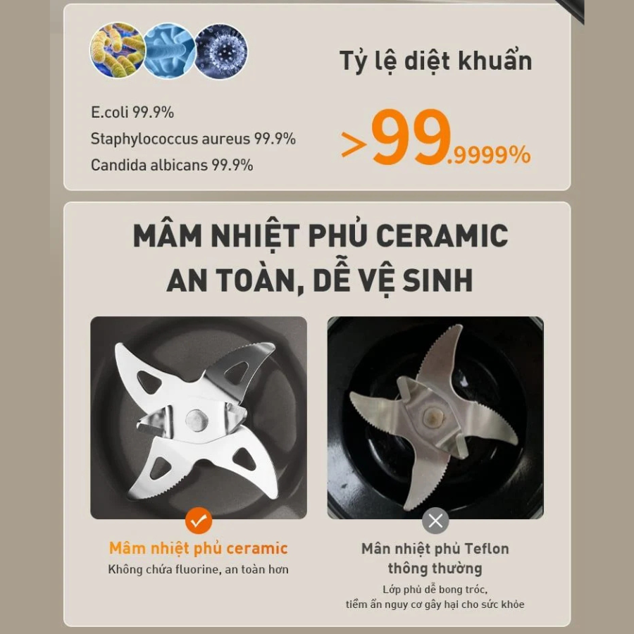 - Mâm nhiệt phủ ceramic đảm bảo an toàn vệ sinh thực phẩm