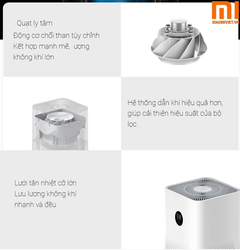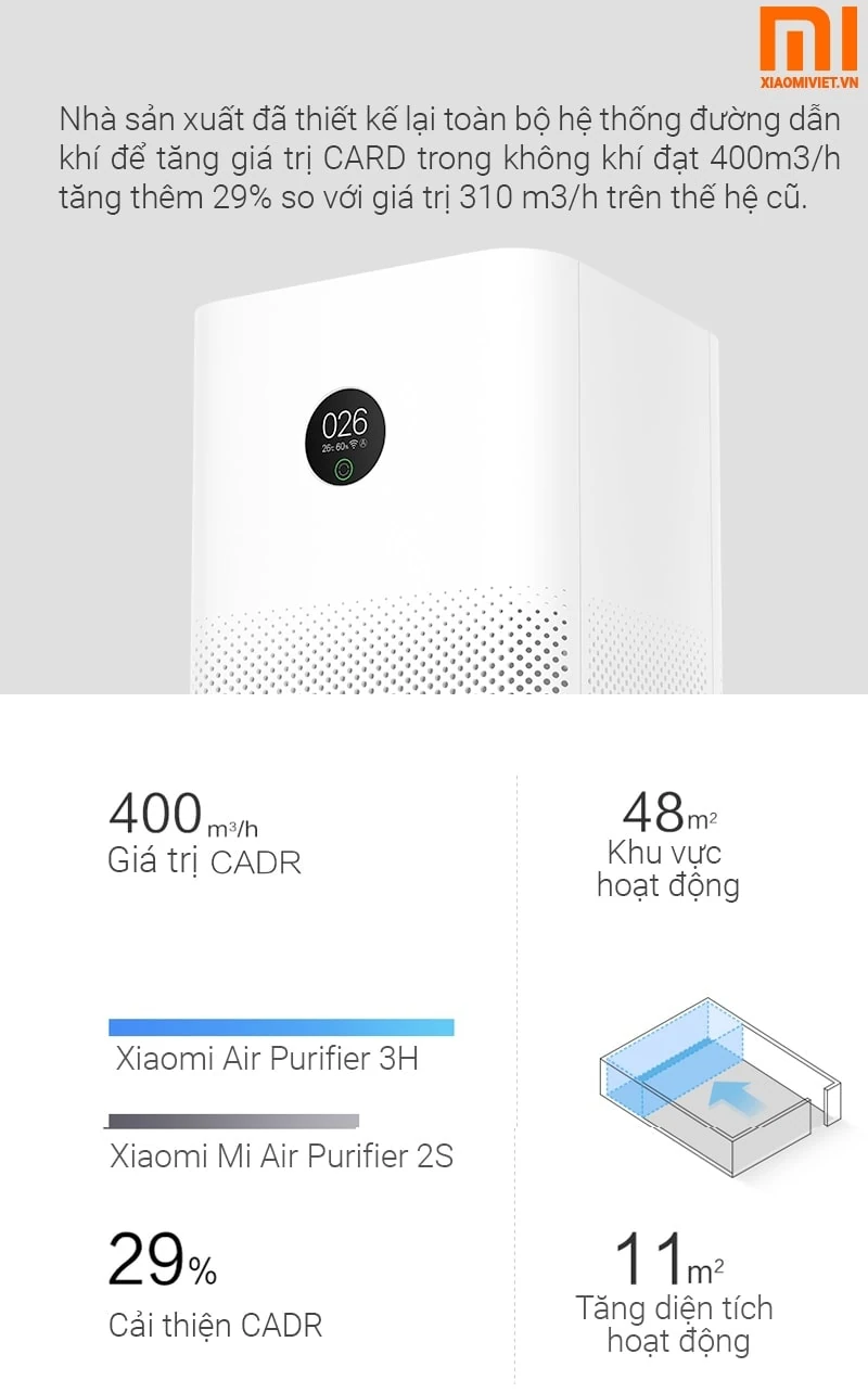 Công nghệ mới, cải thiện hiệu suất lọc Nếu đem so sánh thê hệ trước 2s thì hệ thống của máy lọc không khí Mi Air Purifier 3 đã được thiết kế nâng cấp hơn, tuy nhiên không làm thay đổi kích thước của thân máy. Công suất của Mi Air Purifier 3 cũng được nâng cấp hơn so với thế hệ trước, và có thể cung cấp lên đến 6,660 lít không khí sạch.
