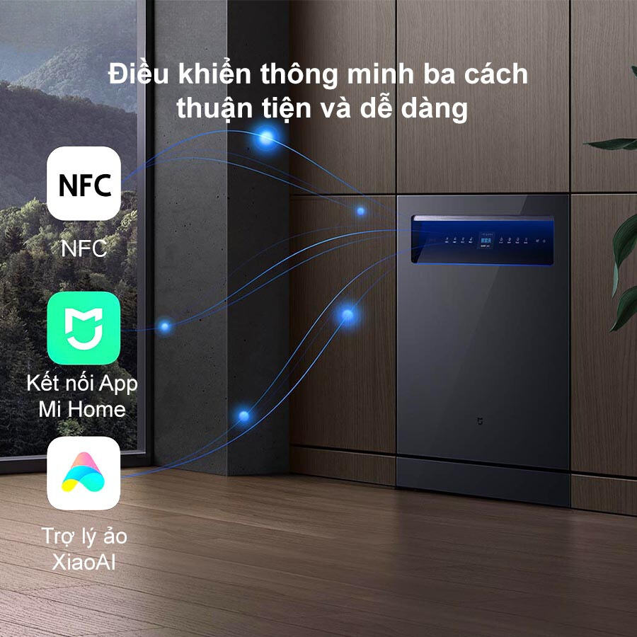 Máy rửa bát rửa chén Xiaomi 16 bộ Mijia P1 hỗ trợ điều khiển dễ dàng qua ứng dụng Mi Home. Ngoài ra kết nối NFC còn cho phép bạn khởi động máy chỉ với một lần chạm, vô cùng tiện lợi.