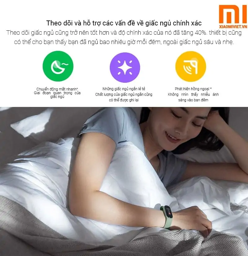 Xiaomi Mi Band 5 có công nghệ phân tích giấc ngủ được cập nhật và mức độ chính xác lên đến 40%. Thiết bị có thể diễn giải một cách chuyên nghiệp các đặc điểm giấc ngủ của từng thời điểm và phản hồi để bạn điều chỉnh giấc ngủ của mình phù hợp, nhằm đảm bảo sức khỏe được tốt nhất, đủ năng lượng cho cơ thể trong ngày hoạt động tiếp theo.
