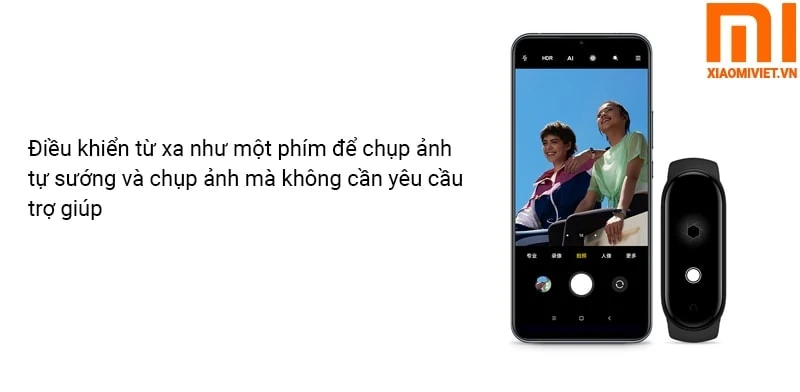Khi kết nối với điện thoại Smartphone qua kết nối từ xa Bluetooth, Xiaomi Mi Band 5 có thể điều khiển camera tự chọn cho mình những góc chụp ưng ý nhất.