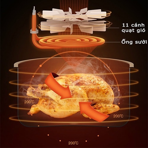 Tương tự như những dòng sản phẩm cùng loại của Xiaomi, Deerma DEM-KZ100 cũng sử dụng công nghệ làm chín thức ăn bằng khí nóng tốc độ cao mà không cần sử dụng đồ ăn; nhờ vậy sức khỏe người dùng được đảm bảo tốt nhất. Hiểu đơn giản hơn thì máy hoạt động dựa trên nguyên lý chuyển động của 11 cánh quạt xoắn ốc, từ đó hỗ trợ tạo ra luồng khí nóng tuần hoàn có công suất lớn (1000W) nên thức ăn được làm chín đồng thời từ mọi mặt, mang lại màu sắc vàng ươm đẹp mắt khi làm những món chiên và mùi vị cực kỳ thơm ngon, tốt cho sức khỏe.