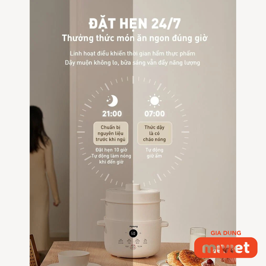 Chế độ hẹn giờ 24/7 cho phép bạn thưởng thức món ngon đúng giờ.