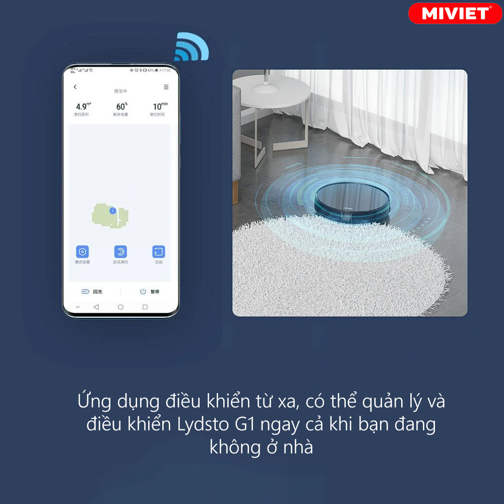 Với ứng dụng điều khiển từ xa, bạn có thể quản lý và điều khiển Lydsto G1 ngay cả khi bạn đang không ở nhà, giúp việc làm sạch trở nên linh hoạt và thuận tiện. Bạn có thể lập lịch làm sạch, chọn chế độ làm việc, theo dõi trạng thái máy và nhận thông báo khi máy hoàn thành công việc.