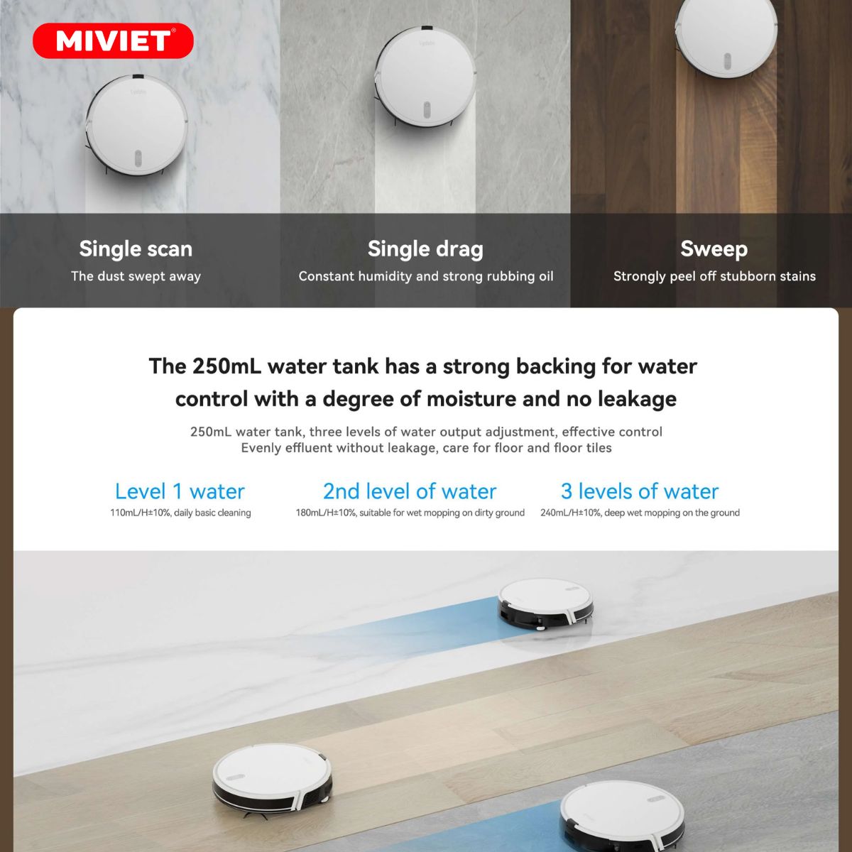 | Chức năng | Hút bụi, lau sàn