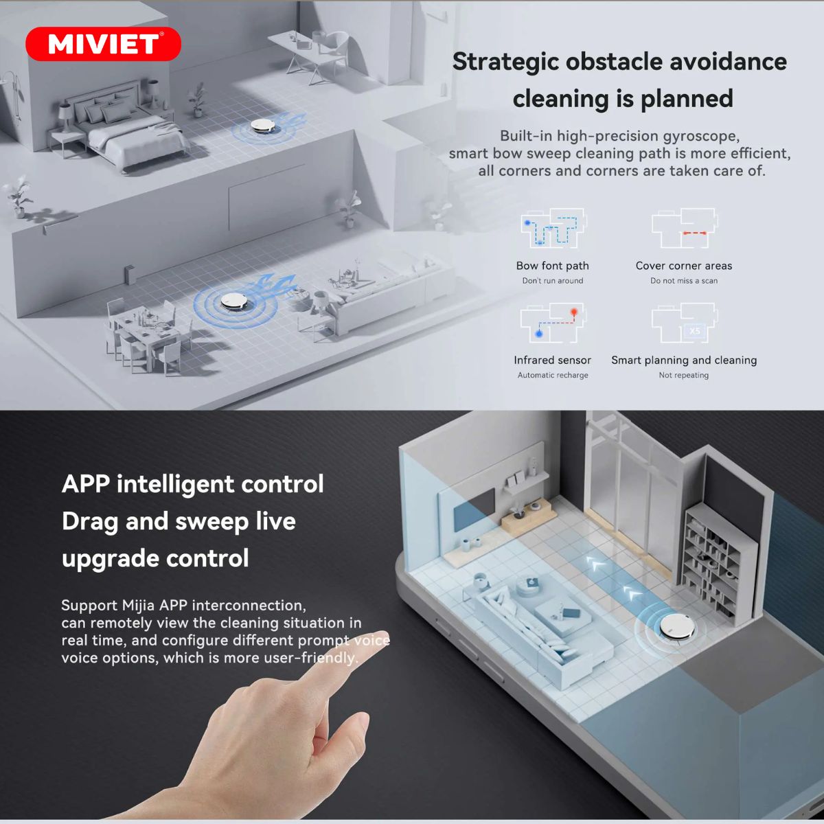 Ngoài những điểm mạnh đã đề cập, chức năng điều khiển từ xa của Robot hút bụi lau nhà Lydsto G2 cung cấp sự tiện ích không thể bỏ qua. Thiết bị có khả năng tự động làm sạch nhà dựa trên lịch trình đã được thiết lập trước thông qua ứng dụng Lydsto Mi Home. Bạn có thể đặt lịch trình, chọn chế độ hoạt động lau hoặc hút, và chỉ định vị trí cần làm sạch. Khi mọi thứ đã được cài đặt, Robot Lydsto G2 sẽ thực hiện nhiệm vụ một cách hoàn hảo mà không cần sự can thiệp của bạn. Kết quả của việc này sẽ rõ ràng khi bạn thiết lập lịch trình dọn dẹp từ xa với Robot Lydsto G2 và sau đó trở về nhà. Bạn sẽ được đón nhận bởi một căn phòng gọn gàng và sạch sẽ, giúp bạn tạo ra một môi trường thoải mái và sảng khoái.