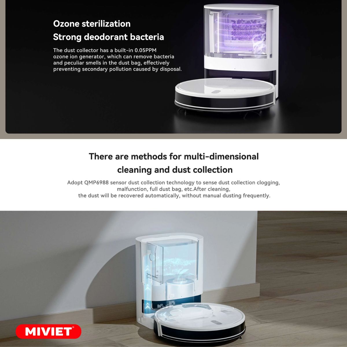 Khử khuẩn Ozone Trạm sạc tự động thu dọn bụi 2 in 1 |