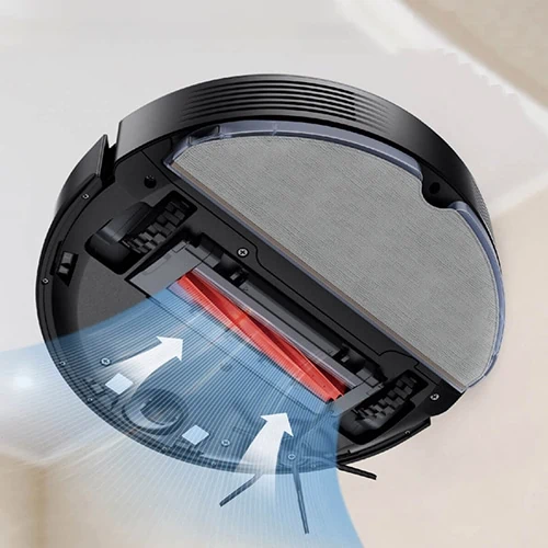 Robot được trang bị các cảm biến quan trọng: cảm biến chống rơi cầu thang, nhận diện thảm thông minh (robot khi gặp thảm sẽ tự động nâng phần vải lau lên, tự động tăng lực hút khi chạy qua thăm lớn). Tuy nhiên dòng này không có cảm biến AI (cảm biến né chướng ngại vật). Robot khi gặp chướng ngại vật sẽ có sự va chạm nhẹ ( bới robot có thanh chắn bảo vệ nên khi va chạm không bị ảnh hương bộ máy trong), sau đó sẽ tự động quay ra và tiếp tục quá trình làm sạch. Đặc biệt, trong suốt quá trình hoạt động, khi phần trăm pin của máy chỉ còn tầm 10-15% thì robot sẽ tự biết chạy về dock sạc để sạc. Lưu ý: khi sử dụng, phải cho robot đi từ dock sạc ra, rồi giữ nguyên vị trí dock, không được dịch chuyển , để robot biết nhận diện vị trí nhà mà về để nạp pin. Ngoài ra, sau khi đã liên kết robot với điện thoại, mình có thể điều khiển từ xa, hẹn lịch tự quét dọn của robot, chia sẻ thiết bị cho các thành viên trong gia đình cùng sử dụng.