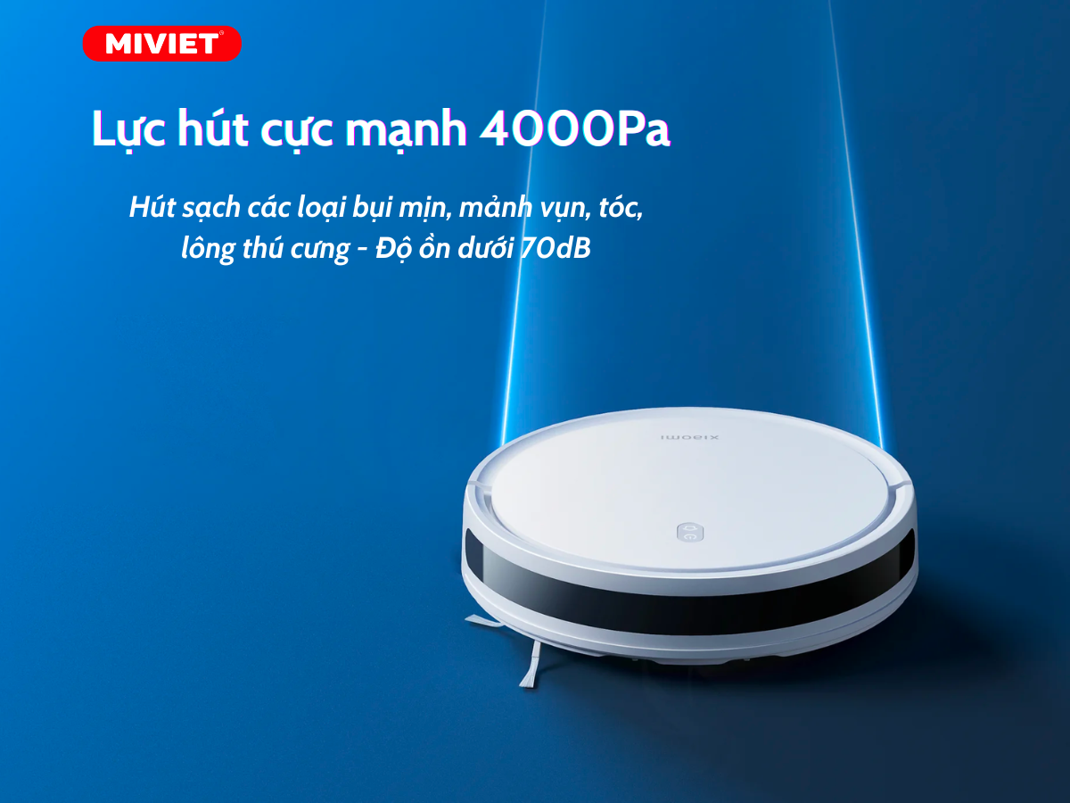 Công suất hút được nâng cấp 4000Pa, hút sạch các loại bụi mịn, mảnh vụn, tóc, lông thú cưng,… tăng hiệu quả làm sạch so với các thế hệ robot đời trước. Tuy robot Xiaomi Vacuum E10 sở hữu công suất hoạt động mạnh, nhưng độ ồn tương đối thấp, dưới 75db. Vì thế, trong lúc robot dọn dẹp sẽ không gây ra tiếng động lớn, hạn chế ảnh hưởng đến sinh hoạt của gia đình bạn.