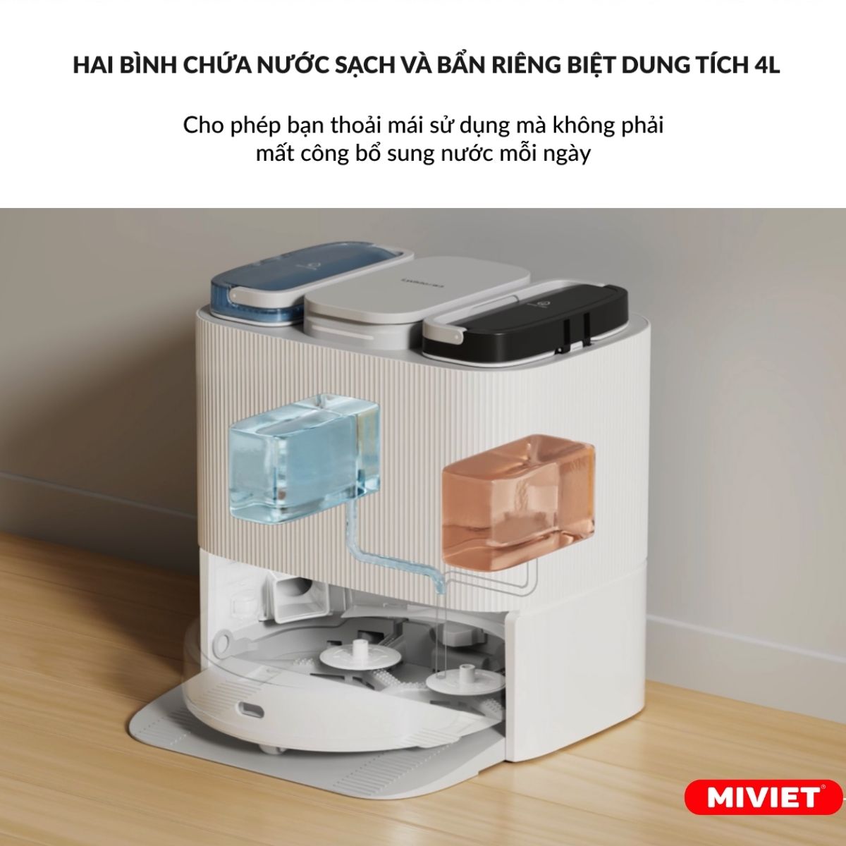 Cùng đó, hai bình giặt xả riêng biệt gồm có một bình chứa nước sạch và một bình chứa nước thải. Với dung tích mỗi bình lên đến 4L mang đến khả năng tiện lợi giặt xả chuyên nghiệp, tiết kiệm thời gian. Tính năng di chuyển mượt mà trên nhiều loại bề mặt sàn nhà nhận thấy Robot hút bụi Lydsto W3 di chuyển linh hoạt giúp dễ dàng vượt qua các vật cản và có thể làm sạch hiệu quả và tổng thể mà không gặp khó khăn.