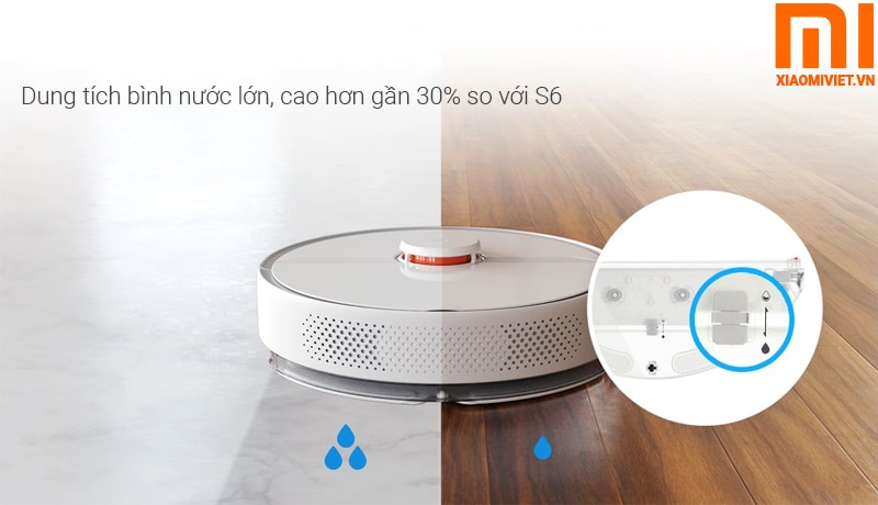 - Thể tích bình nước lớn, chế độ lau ướt thông minh