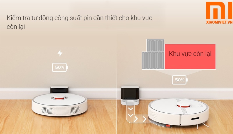 Với dung lượng pin khá khủng 5200mAh, có thể sử dụng liên tục tối đa lên đến 2 tiếng rưỡi, bạn có thể sử dụng thoải mái trong mỗi lần sử dụng. Ngoài ra khả năng trở về dock sạc khi hết pin của Xiaomi Gen 3 6S Pure hiện tại có tốc độ nhanh nhất, khi pin về dưới 20%.