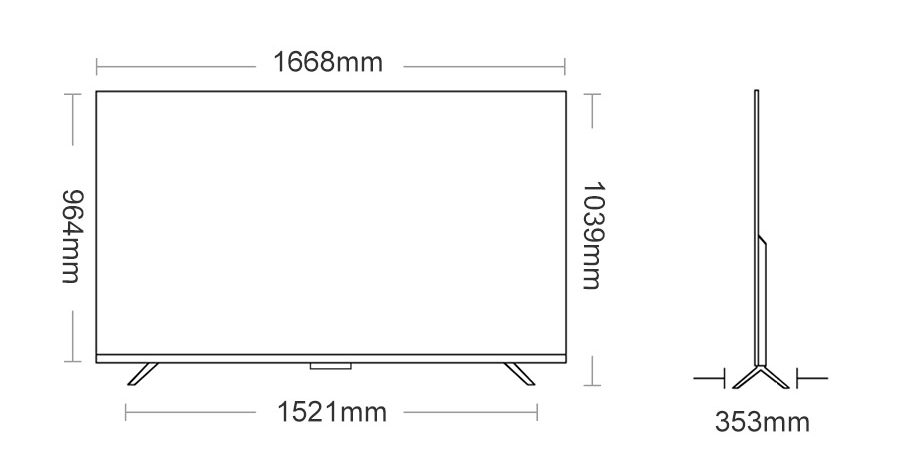 | Kích thước tivi | Kích thước có chân đế: 1668 x 1039 x 353mm |
