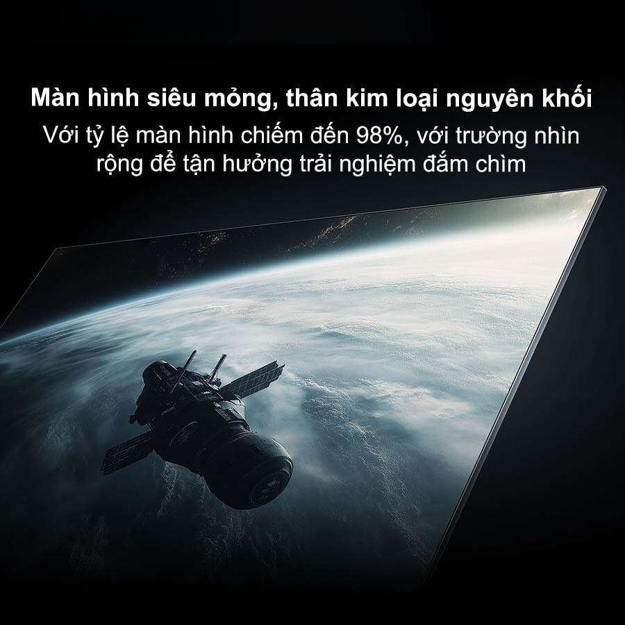 - Thiết kế viền mỏng toàn màn hình kim loại: Tỷ lệ màn hình trên thân máy cao, mang đến vẻ đẹp hiện đại và sang trọng, phù hợp với mọi không gian nội thất.