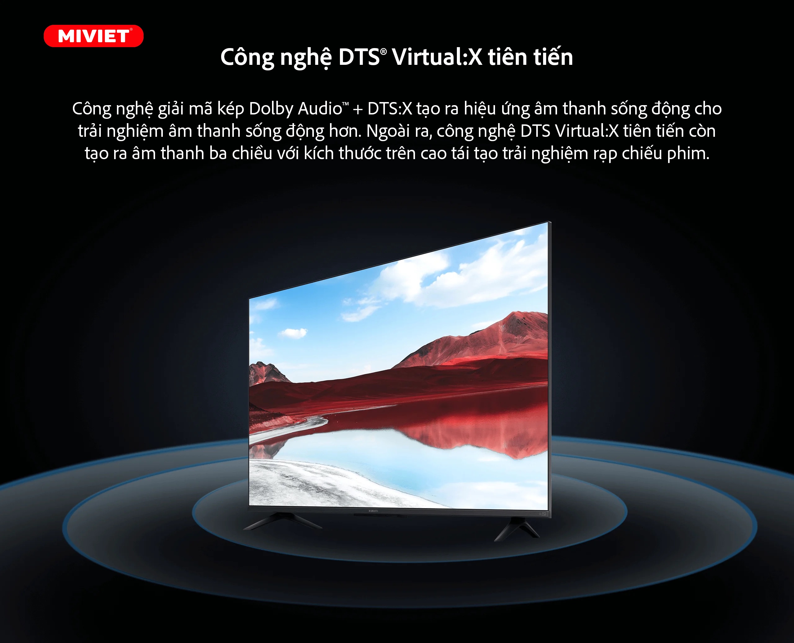 Ngoài ra A Pro 43 inch 4K QLED 2025 còn được trang bị nhiều công nghệ âm thanh khác như Dolby Audio™ và DTS-X hỗ trợ tạo ra hiệu ứng âm thanh sống động hơn. Đặc biệt là công nghệ DTS Virtual:X với khả năng tái hiện âm thanh ba chiều giúp bạn cảm nhận được âm thanh từ mọi hướng như đang ở trong rạp chiếu phim. Mỗi trải nghiệm nghe nhìn cùng Tivi Xiaomi 43 inch A Pro QLED 2025 đều vô cùng trọn vẹn, chạm tới giác quan của bạn.